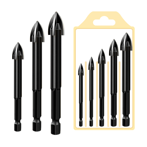 육각 생크 카바이드 크로스 팁 콘크리트 드릴 비트 세트 유리 대리석 화강암 금속 세라믹 타일 벽돌